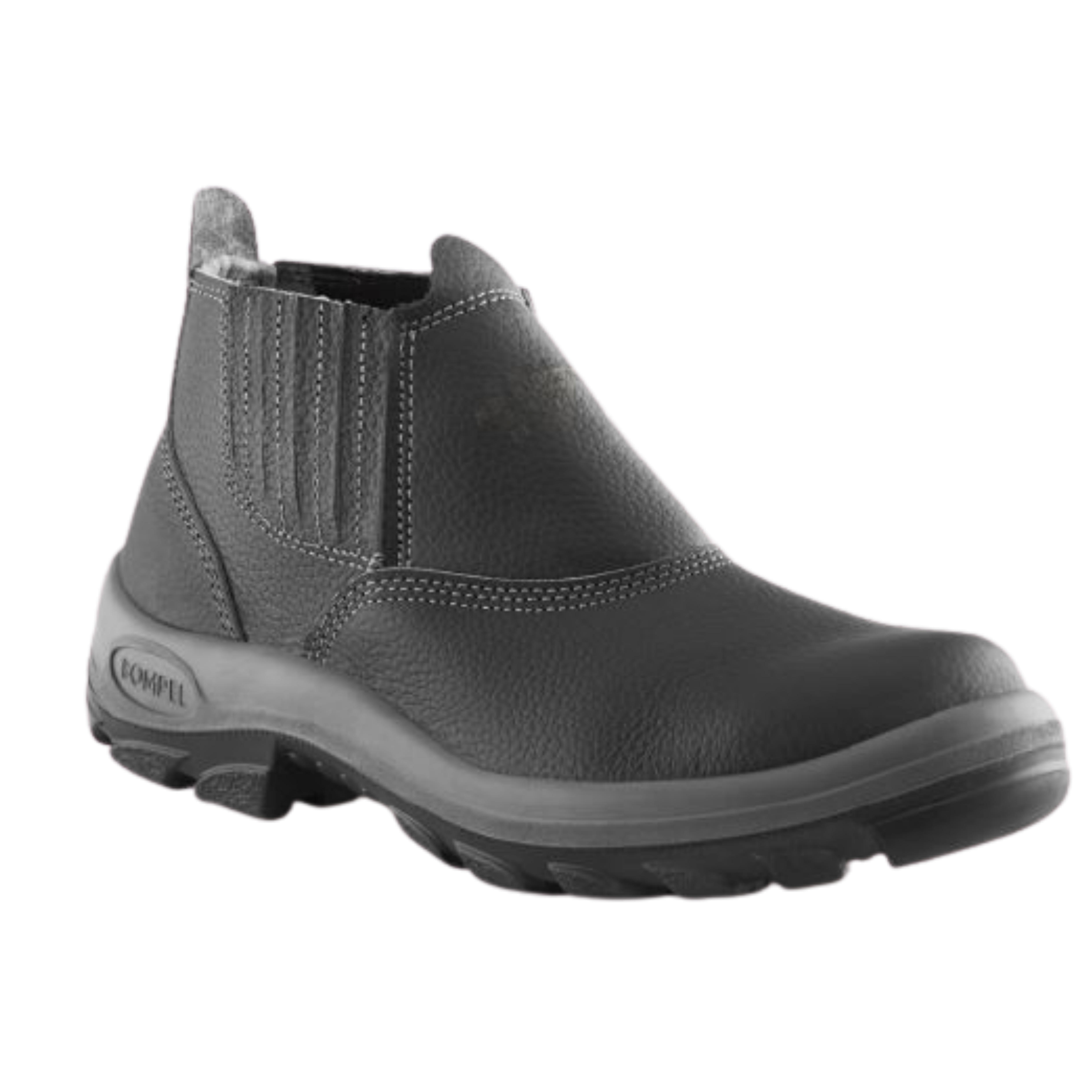 Confeccionado em vaqueta relax, fechamento em elástico, palmilha de montagem, palmilha interna inteira removível, solado de poliuretano bidensidade injetado direto no cabedal.