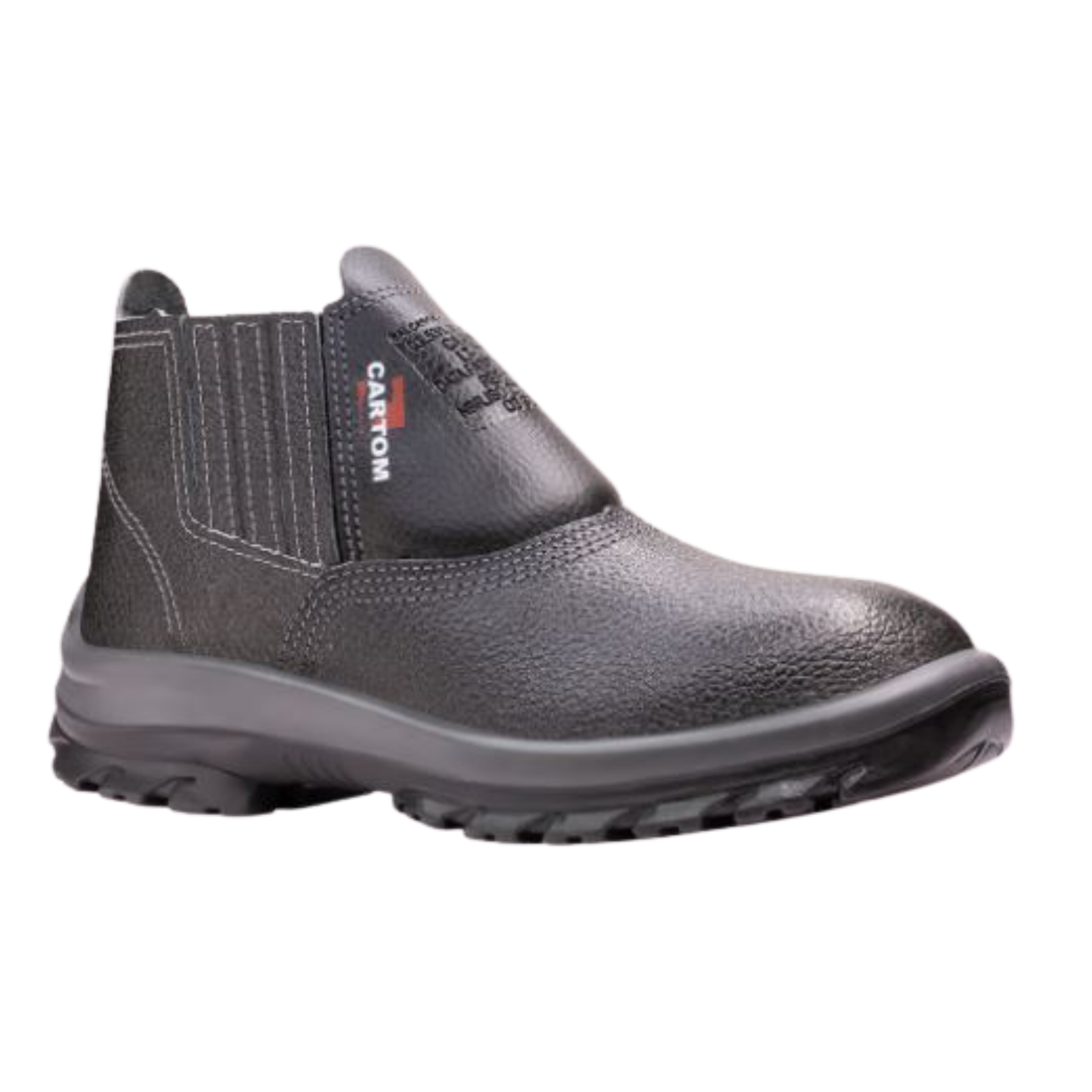 Confeccionada em couro grupon, fechamento em elástico, biqueira de polipropileno, solado bidensidade injetado direto ao cabedal, para uso eletricista